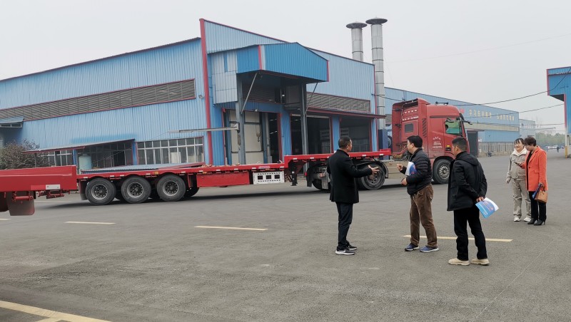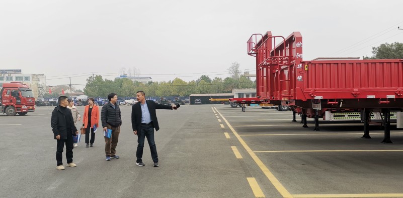 歐總陪同領導參觀半掛車底架生產工藝,公司投入的大型自動噴砂設備,推動半掛車產品質量再次提升!