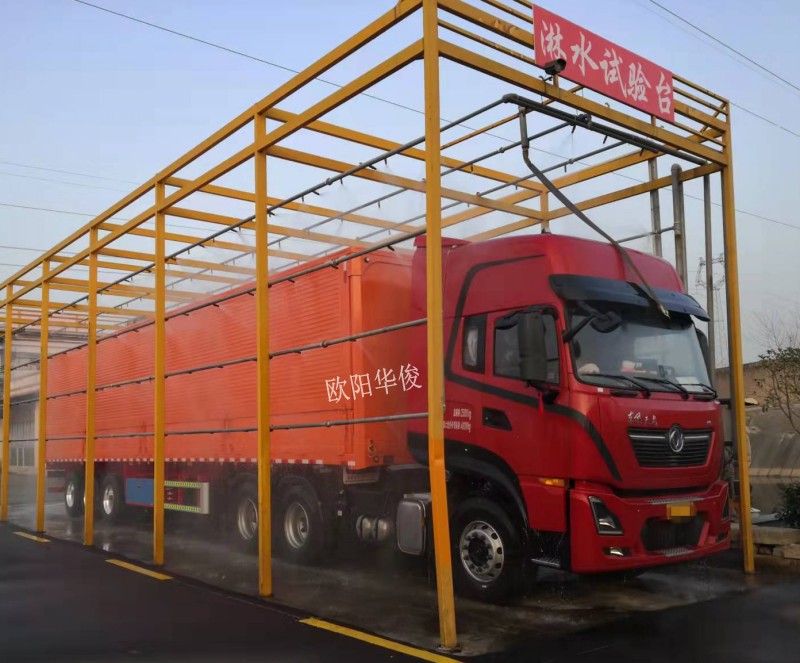 主要負責油漆噴涂、水電氣路安裝、輪胎車橋安裝等工作。我們引進了兩套自動噴砂設備,經噴砂后的掛車,油漆涂層飽滿、均勻、光滑、無死角,附著力、耐腐、滲透性能都是其它傳統涂裝工藝無法比擬的。我們的油漆房也是完全符合國家環保標準的,廢水經過環保處理后可循環利用。此外,我們2016年自主研發設計了淋水試驗臺,徹底解決了集裝箱漏水問題,獲得了國家知識產權局專利證書。