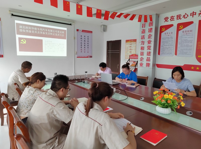 為健全和完善公司黨支部組織建設,做好黨員的發展工作,7月19日下午,湖北歐陽華俊黨支部組織召開支部黨員大會,會議討論和票決是否接收一名同志由發展對象轉為中共預備黨員及三名預備黨員轉正。公司黨支部書記、全體黨員等10余人參加了會議。