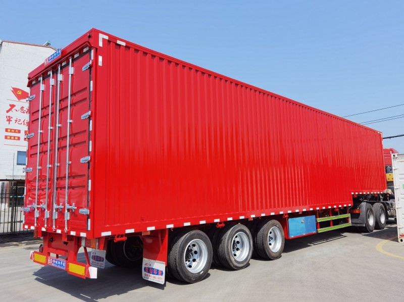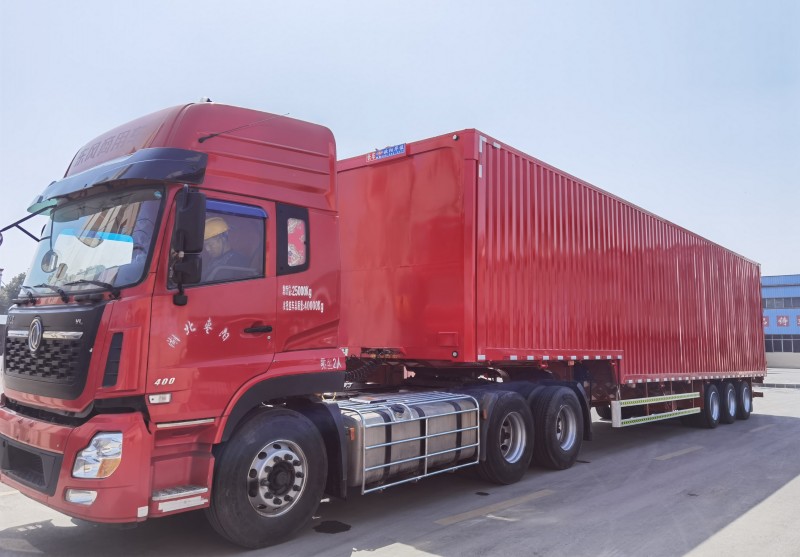 飛翼車廂外部尺寸為:13.75米長*2.55米寬*4米總離地高,高低板設計,更大程度增加內部尺寸,出廠前進行試飛及淋雨試驗,翼開啟廂式半掛車快遞物流助力軍,省時省力,運輸利器。