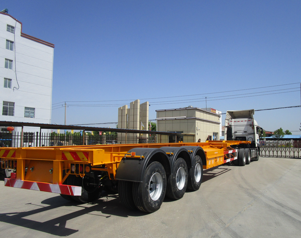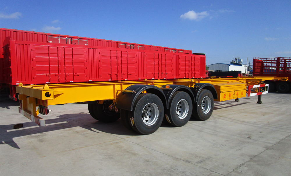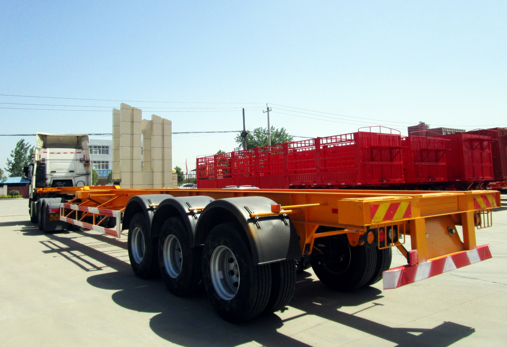 骨架式集裝箱半掛車即載貨部位為集裝箱結(jié)構(gòu)的半掛車,主要有40英尺骨架、45英尺骨架等,一般都帶有鎖具。