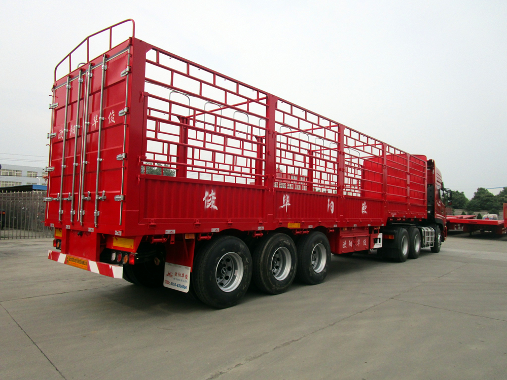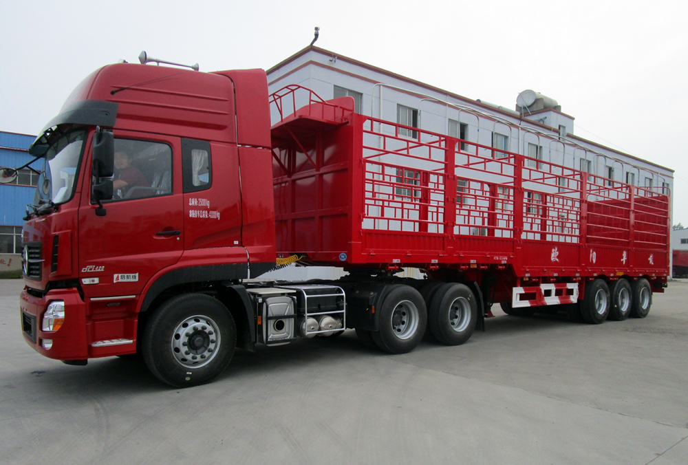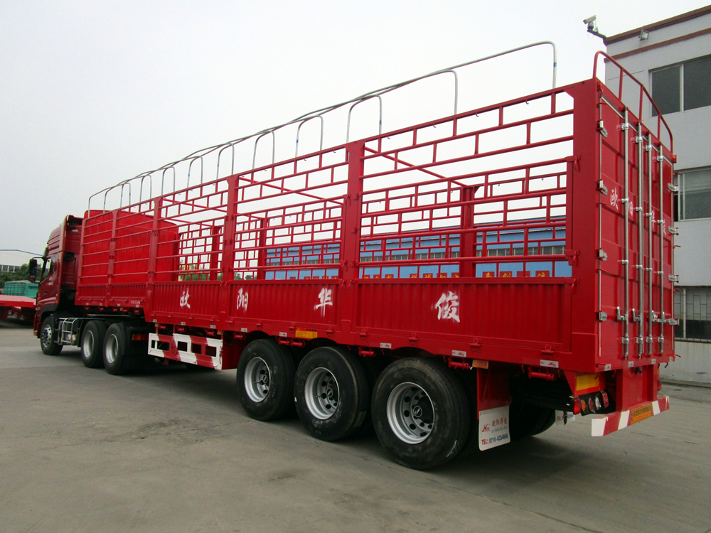 倉柵式半掛車主要分為直梁式和鵝頸式兩種類型;倉欄高度可做為1.6米、1.8米、2米、2.2米等規格定做不同樣式,后開門樣式分為:對開門、墻板加花籃、墻板加對開門等。