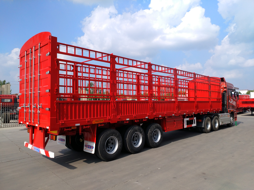 倉柵式半掛車主要分為直梁式和鵝頸式兩種類型;倉欄高度可做為1.6米、1.8米、2米、2.2米等規格定做不同樣式,后開門樣式分為:對開門、墻板加花籃、墻板加對開門等。