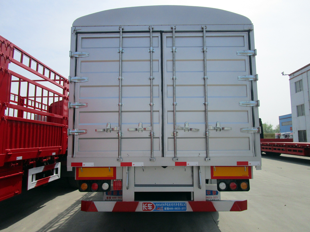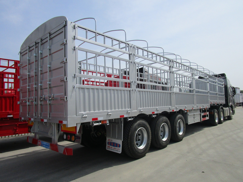 倉柵式半掛車主要分為直梁式和鵝頸式兩種類型;倉欄高度可做為1.6米、1.8米、2米、2.2米等規格定做不同樣式,后開門樣式分為:對開門、墻板加花籃、墻板加對開門等。