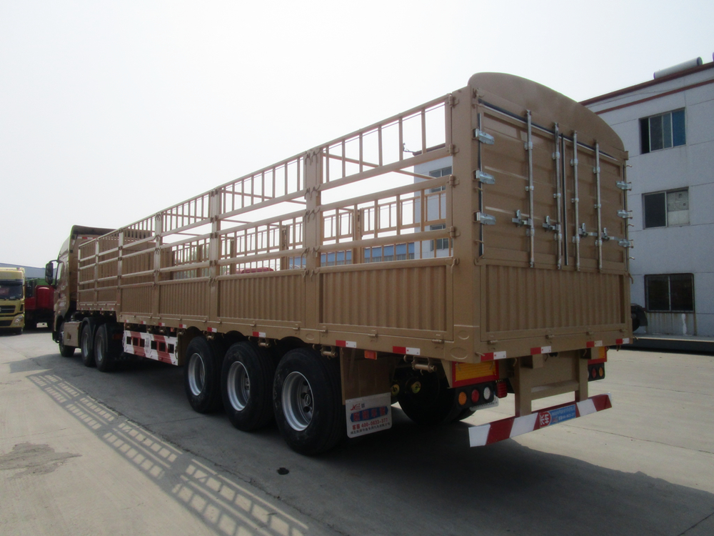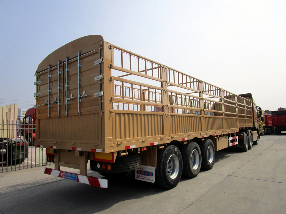 倉柵式半掛車主要分為直梁式和鵝頸式兩種類型;倉欄高度可做為1.6米、1.8米、2米、2.2米等規格定做不同樣式,后開門樣式分為:對開門、墻板加花籃、墻板加對開門等。