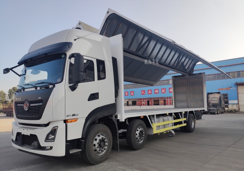 飛翼車全稱翼開啟廂式運輸車,飛翼車的車廂兩翼靠動力單元驅動能夠展開升起來。歐陽華俊的飛翼車廂設計美觀,貨物運輸安全可靠。隨著我國物流行業的快速發展,因它不需要蓋篷布,且方便快捷的裝卸方式,越來越受到客戶的青睞。 感謝廣大物流公司選擇湖北歐陽華俊專用汽車有限公司,讓我們一起合作共贏