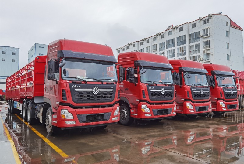 陰雨綿綿,歐陽華俊廠區(qū)一片熱火朝天的忙碌景象!19臺出口高欄運輸半掛車依次通過客戶檢驗后,批量發(fā)往海外。 繁忙有序的發(fā)車進行中... 整車出口,整裝待發(fā)