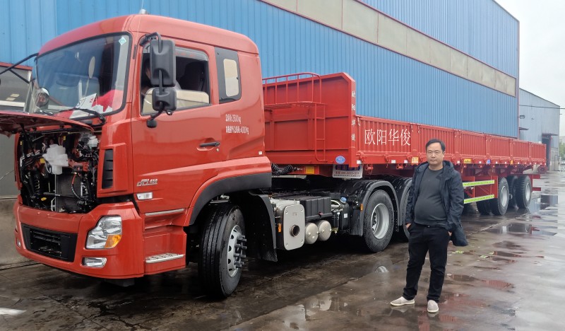 河南作為歐陽華俊重點銷售市場之一。湖北與河南兩地相鄰,天然的地理區位優勢,加上歐陽華俊穩定可靠的質量及客戶口碑相傳的轉介紹,客戶訂單捷報頻傳,歐陽華俊在河南半掛車市場占有率逐年節節攀升!幾乎每天都有河南的客戶朋友來廠提車便能說明。小編在廠區拍照的時候就偶遇了即將出廠的河南王老板。