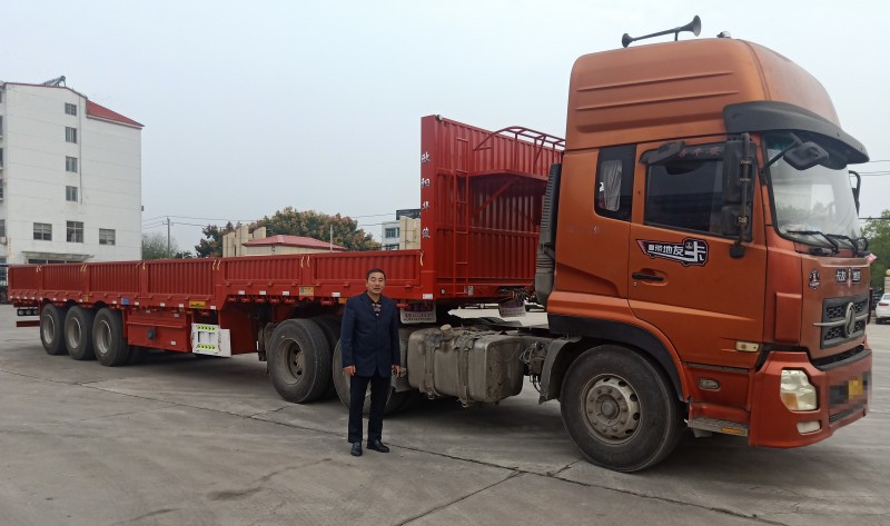 為了滿意的掛車,何必到處尋覓,歐陽華俊解決您的購車難題。歐陽華俊11年半掛車制造廠家,擁有豐富的技術積累,工藝精湛,質量可靠,外型美觀,保證合你心意。湖北老鄉黃總親睞歐陽華俊的品牌慕名而來,定制了屬于自己的13米欄板半掛車,黃總的眼光沒有錯,一款精致的13米欄板呈現到我們眼前,讓我們一起來看看