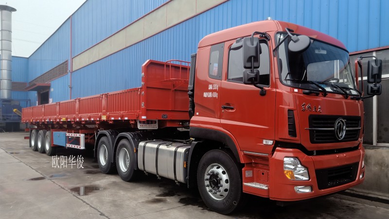 歐陽(yáng)華俊全新13米側(cè)翻半掛車完工交付啦!與湖北荊門王總駕駛的東風(fēng)天龍牽引車極好的般配。王總是一位十分開朗的朋友,在一起交談總是笑口常開,滔滔不絕,讓人特別舒心。 整車外觀 外觀尺寸(長(zhǎng)*寬*高):13米*