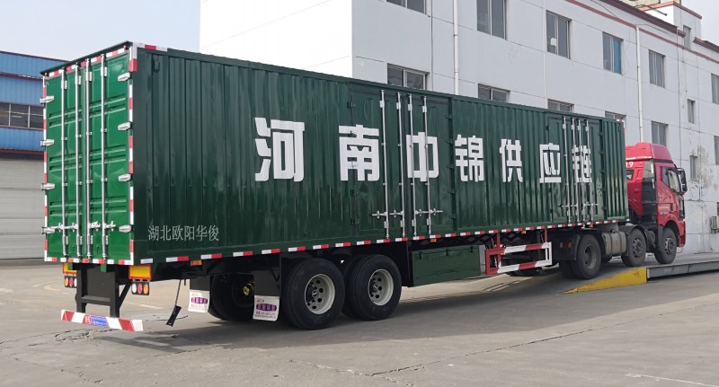 近日,歐陽華俊老客戶武漢市榮欣物流有限公司定做的10臺13米廂式半掛車經過淋水試驗臺檢驗合格,如期離廠!廂式半掛車廂頂有封閉式、推拉開啟式、敞開式、敞口代篷布桿式等,操作方便,滿足用戶多樣化、個性化要求。 廂式半掛車主要適用于家用電器、輕紡貨物、煤炭、沙石等建筑材