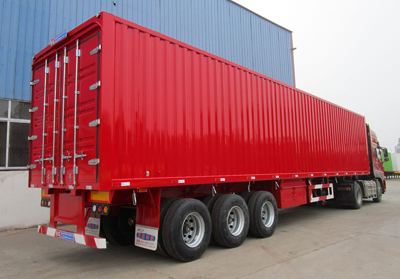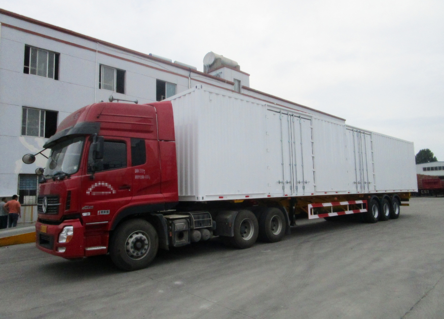 【輕型掛車】4臺13高低板式欄板半掛車和1臺13米大開門高欄半掛車完工交付湖南益陽羅總,此4臺欄板半掛車尺寸為13米長×2.55米寬×0.6米高,1臺13米高低板大開門高欄車廂尺寸為13米長×2.55米寬×2.2米高。輕量化欄板半掛車是本公司很暢銷的半掛車之一,是為了響應國家規范運輸車輛的裝載