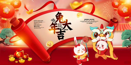 飛雪迎春到, 玉兔捧福來, 開門迎春春回大地, 抬頭見喜喜滿神洲! 虎去兔來新一年, 一年一歲一團圓。 兔年吉祥又如意 男女老少都開心 大年初一,新年第一天 在此為所有